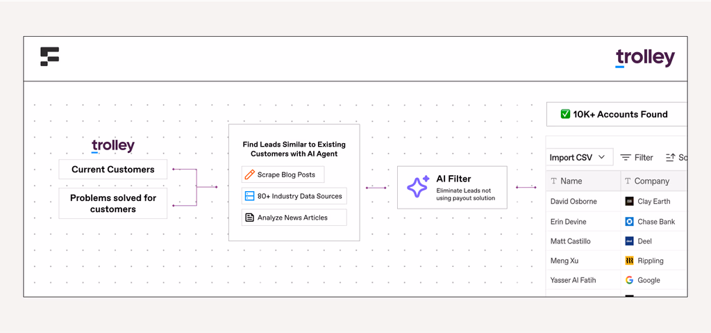 With a lean GTM team and ambitious growth goals across North America, Europe, and Australia, Trolley needed a reliable way to identify the right prospects, build high-fit contact lists, and personalize outreach messages.